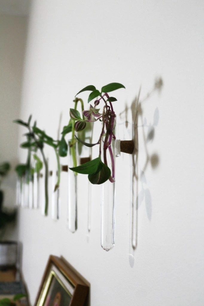 You can easily DIY a propagation wall with some test tubes and command strips – or purchase some premade holders.