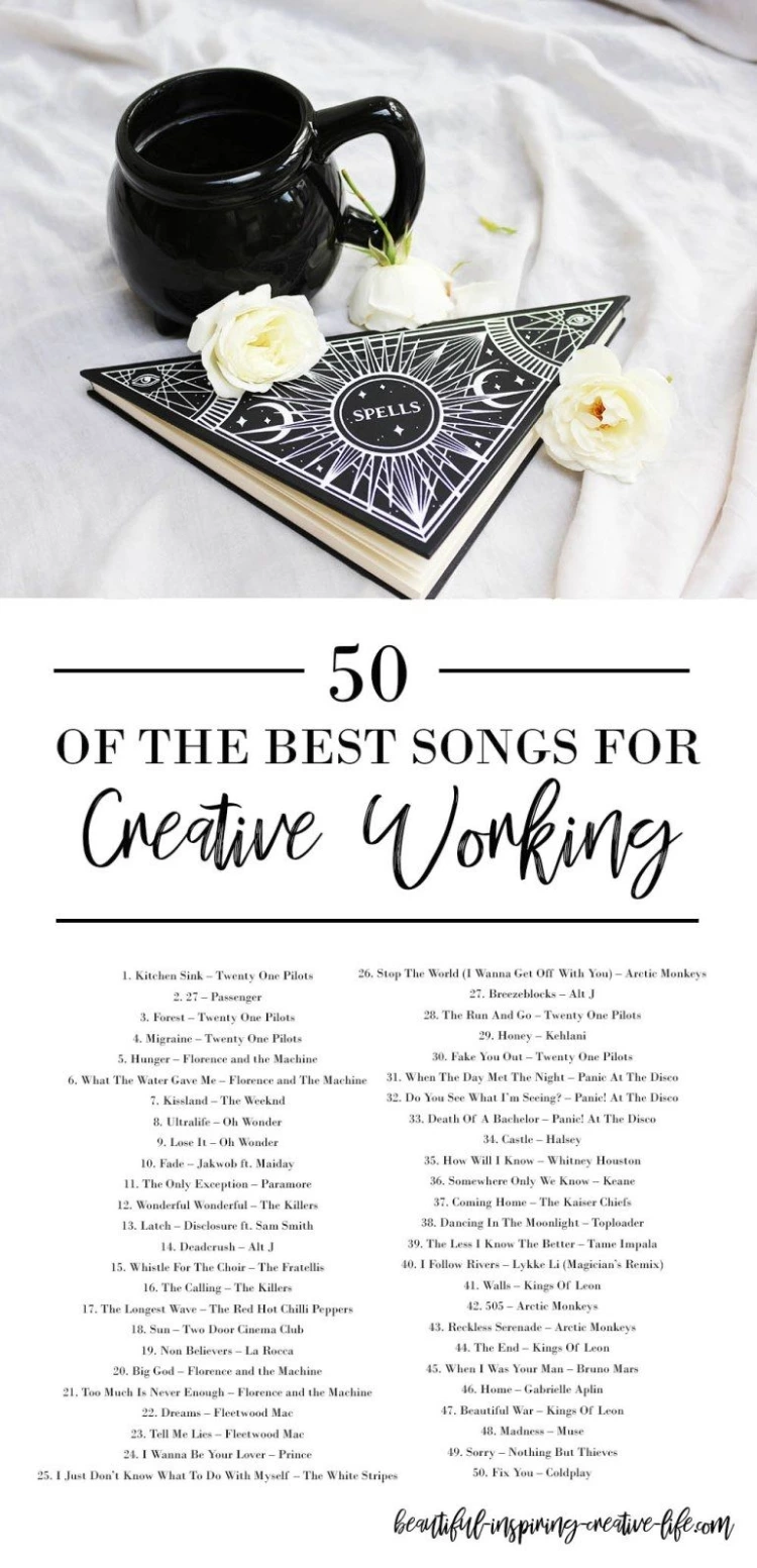 For me, there are very few things more important to creating a good work environment than music. And one of those things is tea, which – as a British person – is saying a lot. The right playlist can massively put me in the mood to be creative and concentrate . . . so today I’m sharing 50 of the most creatively inspiring songs that help me get my ass in gear*.