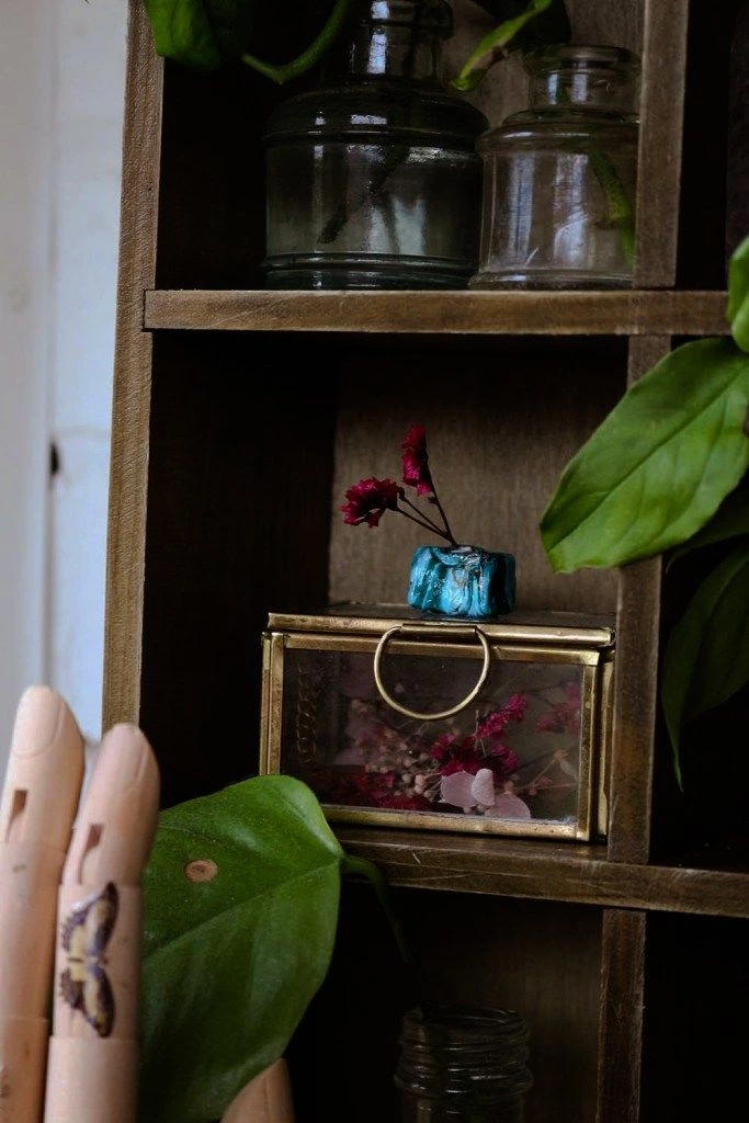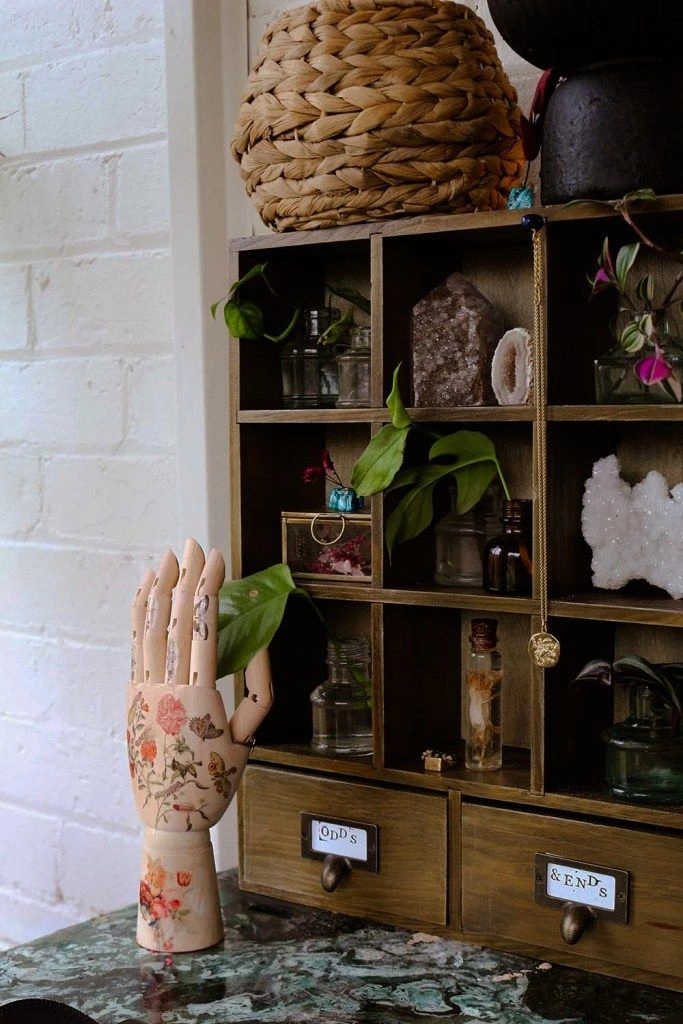 Alright, my loves, we shall end at the end! I hope you enjoyed my mini DIY curio cabinet – and were inspired to get out there and create some practical magical home decor of your own. Make sure you remember to check out the video too!