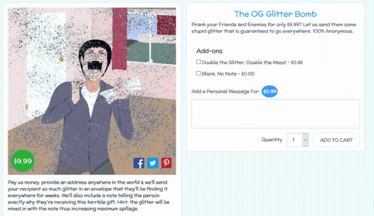 Want to ship your enemies glitter, or a bag of dicks (with optional penis confetti!)? Ship Your Enemies Glitter Website Here!