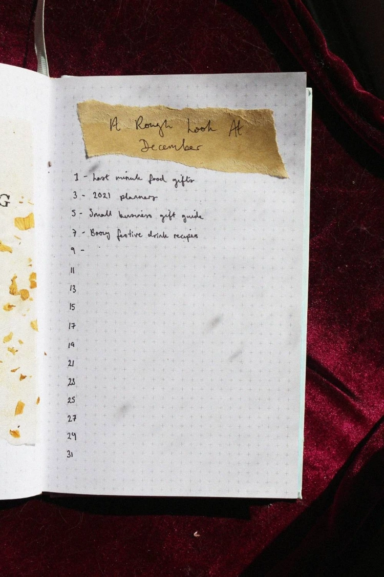 Next up, I have my post calendar. Setting this up at the beginning of the month really helps me to get organised with writing, shooting and preparing ahead of time. (Plus, making sure I don’t totally overload you with Christmas content. Because I’m super tempted to. Just saying.)