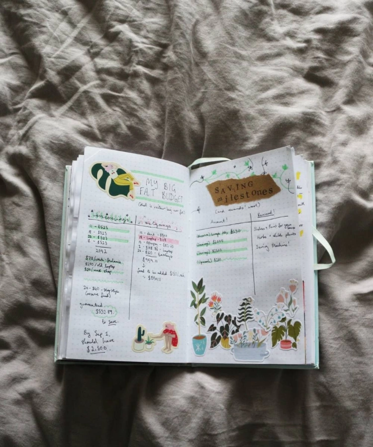 I love using my journal to set budgeting goals and track my spending – some people prefer digital, but something about having figures physically written in front of me helps everything click in my brain.